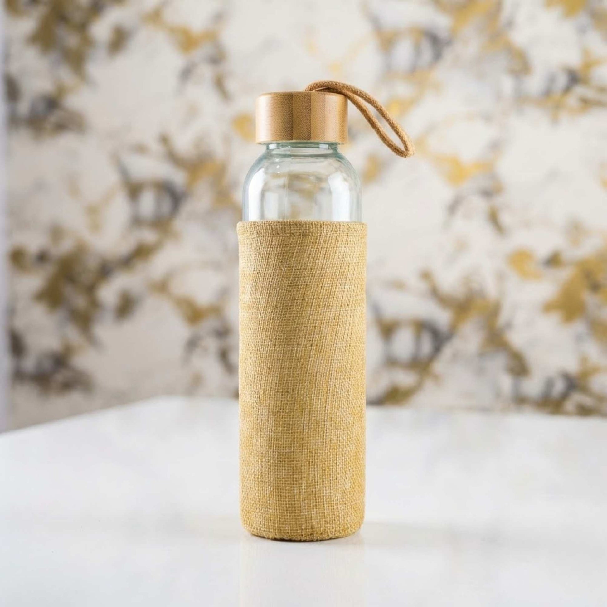 Eco-Friendly Glass Water Bottle with Bamboo Lid & Jute Sleeve | Reusable Natural Bottle