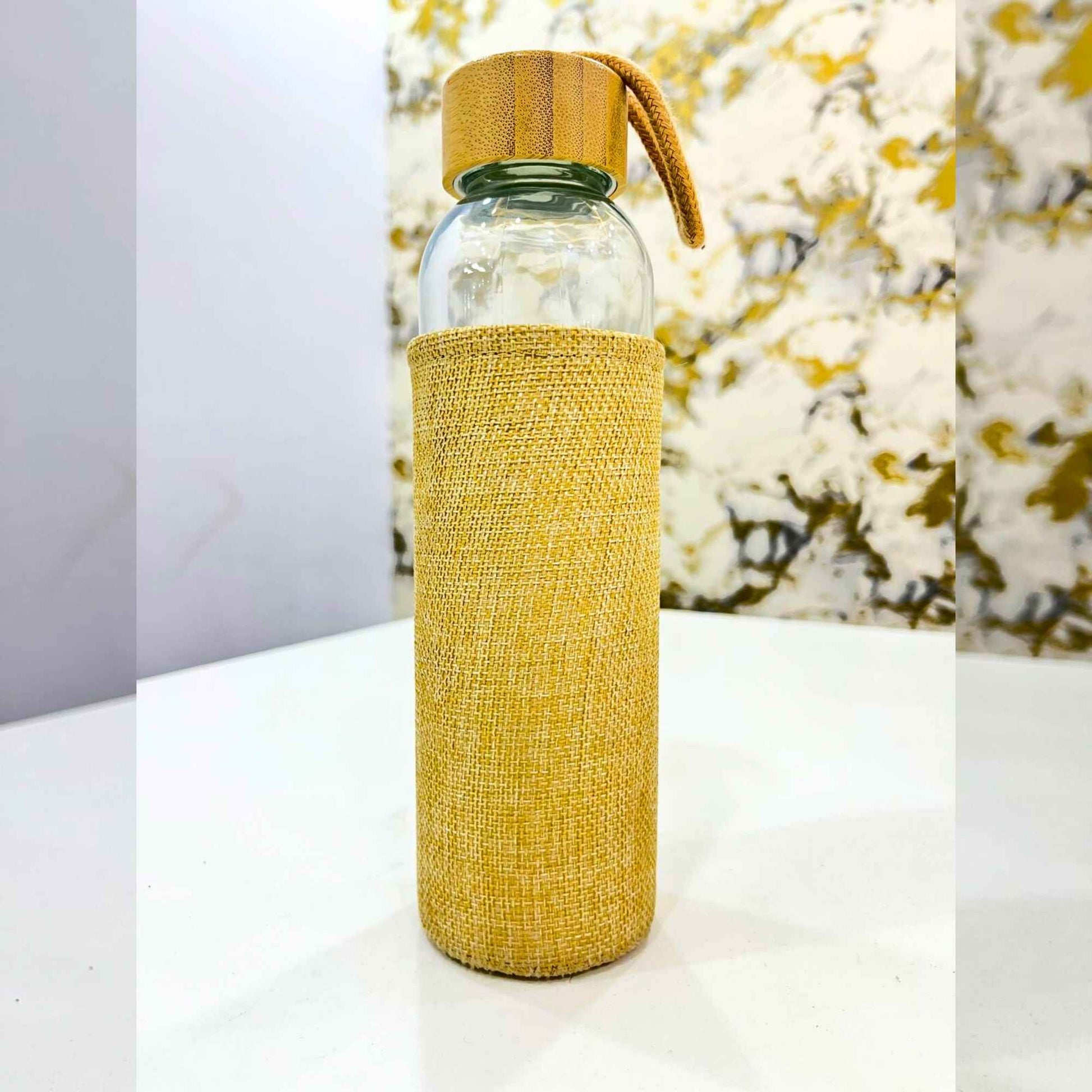 Upgrade your daily hydration with this eco-friendly glass water bottle, crafted for sustainability and style. Featuring a natural bamboo wooden lid, protective jute fabric sleeve, and convenient carry rope, this bottle is perfect for office, travel, yoga, and gifting.